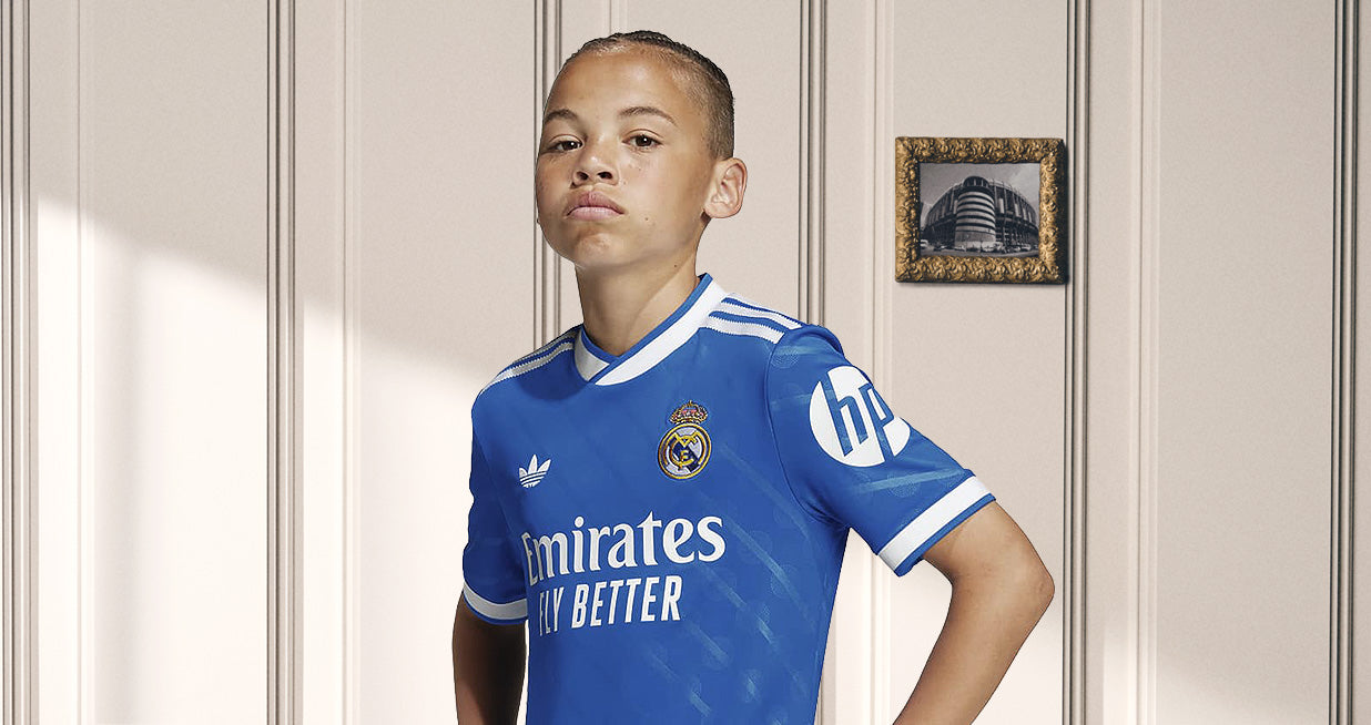 The new Real Madrid Youth Third Kit 25/26 is more than just a jersey, it’s a statement of heritage, design and fashion. Inspired by the legendary blue seats of the old Santiago Bernabéu, it fuses the club’s football legacy with modern fashion culture. Serrated white stripes nod to the classic adidas bluebird shoe box, while a subtle diagonal pattern adds texture and depth. Additionally, for the Authentic versions, the inside includes a special sign-off: “90 minuti en el Bernabéu son molto longo”, a design that honours the atmosphere visiting teams encounter at the Bernabéu.